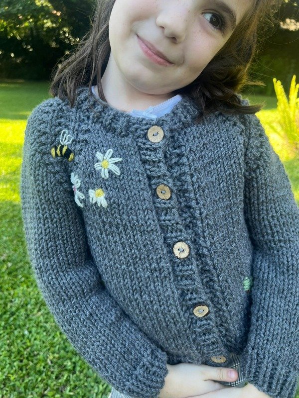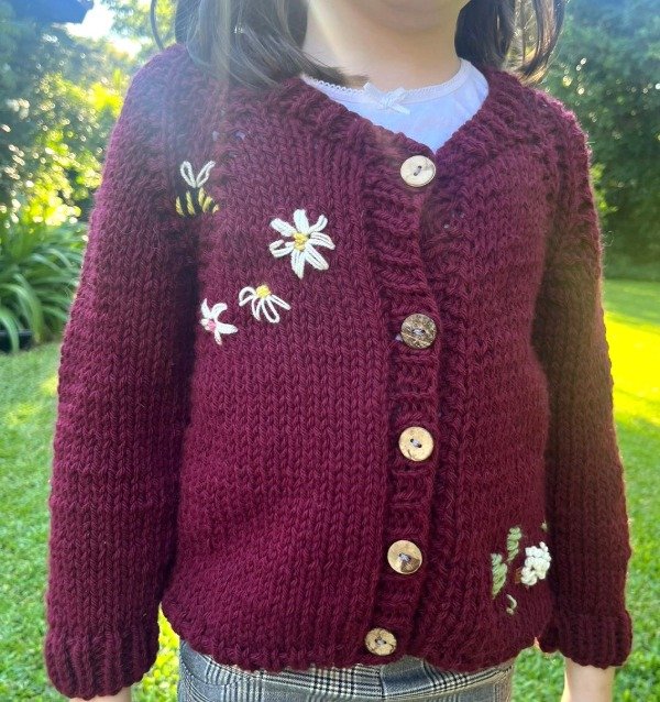Cárdigan bordado y tejido a mano en lana cashmilon.
